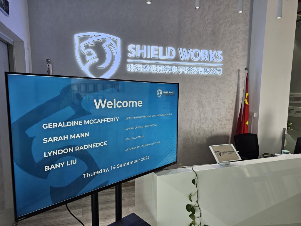 We had the honour of welcoming Geraldine McCafferty, Deputy Head of Mission at the British Embassy Beijing, and Sarah Mann, newly appointed Consul-General in Guangzhou, to our facility in Zhuhai — along with Lyndon Radnedge, Political Consul, and Bany Liu, Research and Programme Officer.